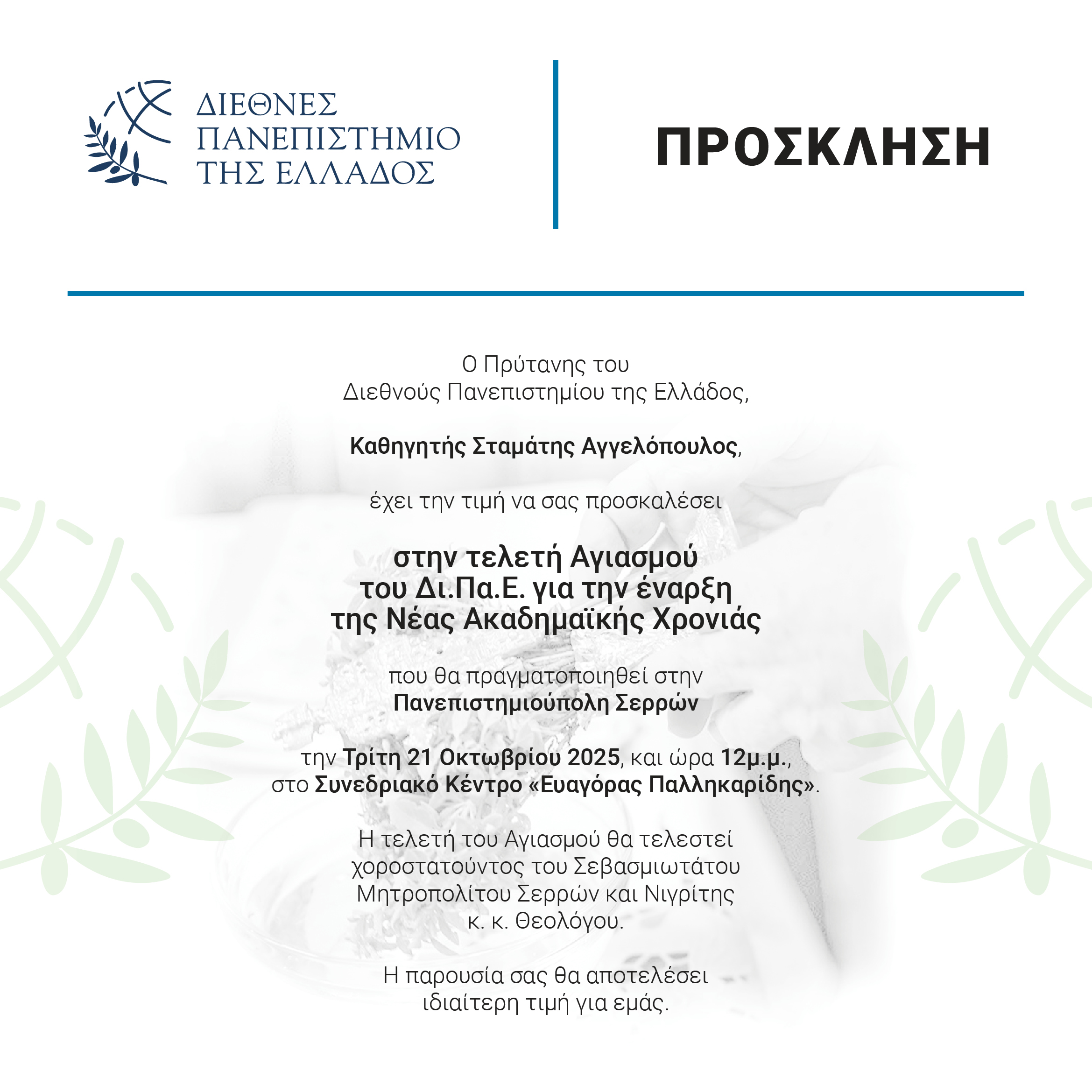 Γραμματεία Εσωτ. Αρχιτεκτονικής Ανακοινώσεις γραμματείας, Μόνιμες ανακοινώσεις 14 Οκτωβρίου 2025 Δεν επιτρέπεται σχολιασμός στο Τελετή Αγιασμού για την έναρξη της Νέας Ακαδημαϊκής Χρονιάς Τελετή Αγιασμού για την έναρξη της Νέας Ακαδημαϊκής Χρονιάς
