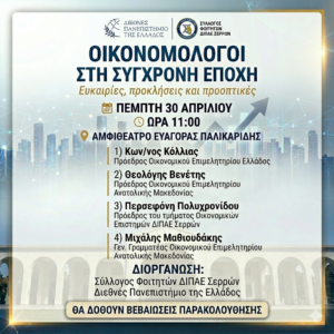 Γραμματεία Εσωτ. Αρχιτεκτονικής Ανακοινώσεις γραμματείας 24 Απριλίου 2026 Δεν επιτρέπεται σχολιασμός στο Εκδήλωση με θέμα “Οικονομολόγοι στη σύγχρονη εποχή”_Πέμπτη 30.4.2026_ώρα 11:00 Εκδήλωση με θέμα “Οικονομολόγοι στη σύγχρονη εποχή”_Πέμπτη 30.4.2026_ώρα 11:00