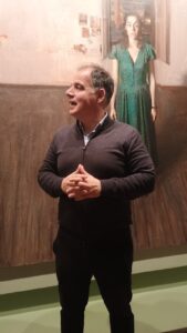 Στη συνέχεια επισκέφθηκαν την έκθεση “Όψεις παραστατικότητας στη σύγχρονη ελληνική ζωγραφική” έργων από τη Συλλογή του κ. Ιορδάνη Κοτζαϊβάζογλου, Κοσμήτορα της Σχολής Επιστημών Σχεδιασμού, ΔΙΠΑΕ και ξεναγήθηκαν από τον ίδιο.