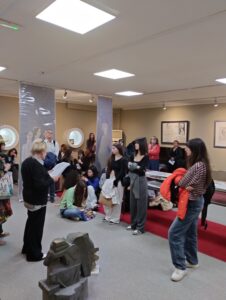 Τέλος ξεναγήθηκαν από τον κ. Γιώργη Μελίκη στη έκθεση – Installation «Κρεβάτια. Από τον Κ.Π. Καβάφη στον Ιωάννου και στο ολοκαύτωμα» και στην έκθεση έργων της γλύπτριας Ασπασίας Παπαδοπεράκη με τίτλο «Τα Αιγαιοπελαγίτικα μου» στο Βαφοπούλειο Πνευματικό Κέντρο.